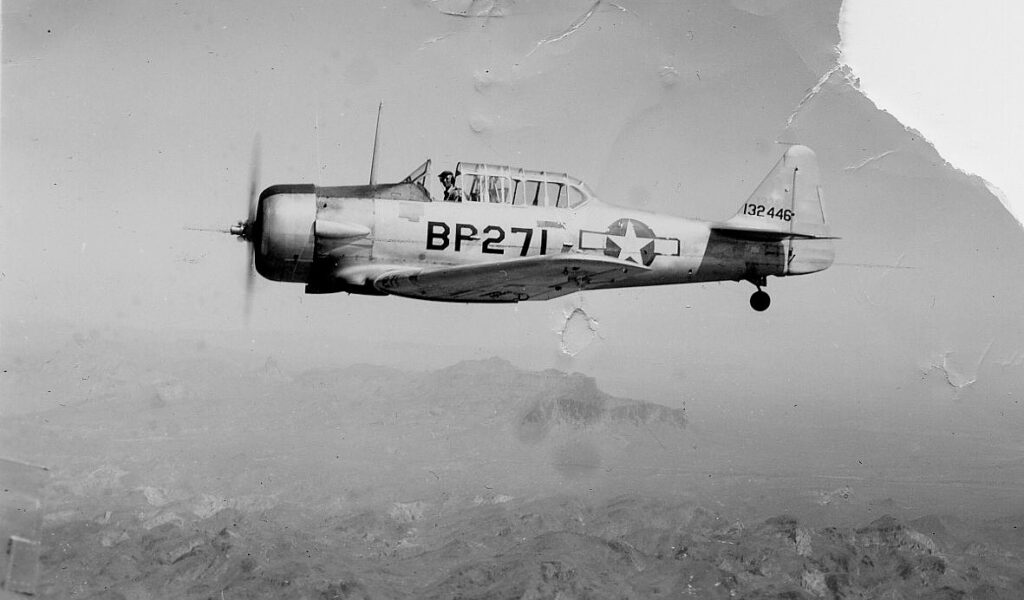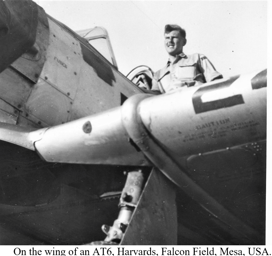 During our stay in Phoenix we attended the Armistice service at Mesa Cemetery where 19 of our cadets had been buried after crashing during their training on the courses that had preceded us. Each grave was decorated with a small Union Jack and beside it the American stars & Stripes. A Scots band of pipers was present and played throughout the service and then overhead flew a Stearman and a Harvard Training aircraft in salute to those who were buried there. This event was most moving to the majority of us and I recall one of our course who came to me and said, “I tried to take photographs but the tears in my eyes would not enable me to see what I was taking”.