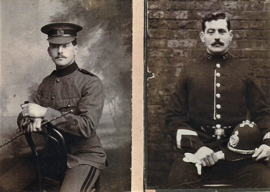(Left) My Father in uniform of the Dorset Yeomanry, 1905 & (Right) in winter uniform of Weymouth Borough Police.