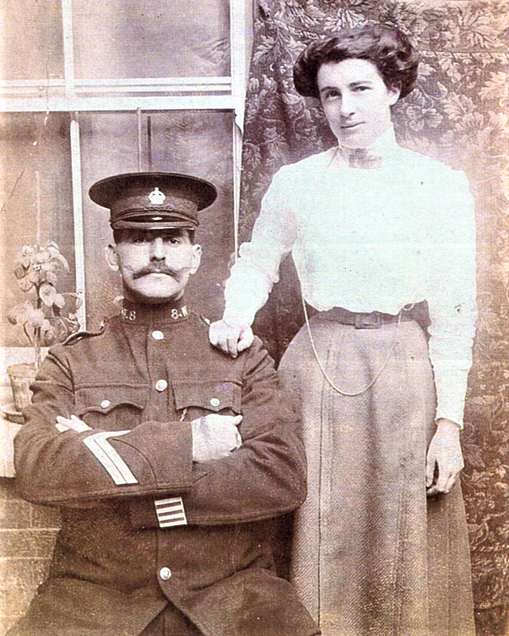 His father was a building mason and Dad went with him to a number of places to work, repairing churches and building houses at Crewkerne and Evershot. He later joined the Dorset Yeomanry as a trooper. This was a volunteer unit similar to the modern TA but where each volunteer had to supply his own horse. He attended a number of annual camps with the Yeomanry, mainly at Preston in Weymouth. For a time he courted a young lady at Halstock who presented him with a pair of gold cuff links which I have and frequently use to today.