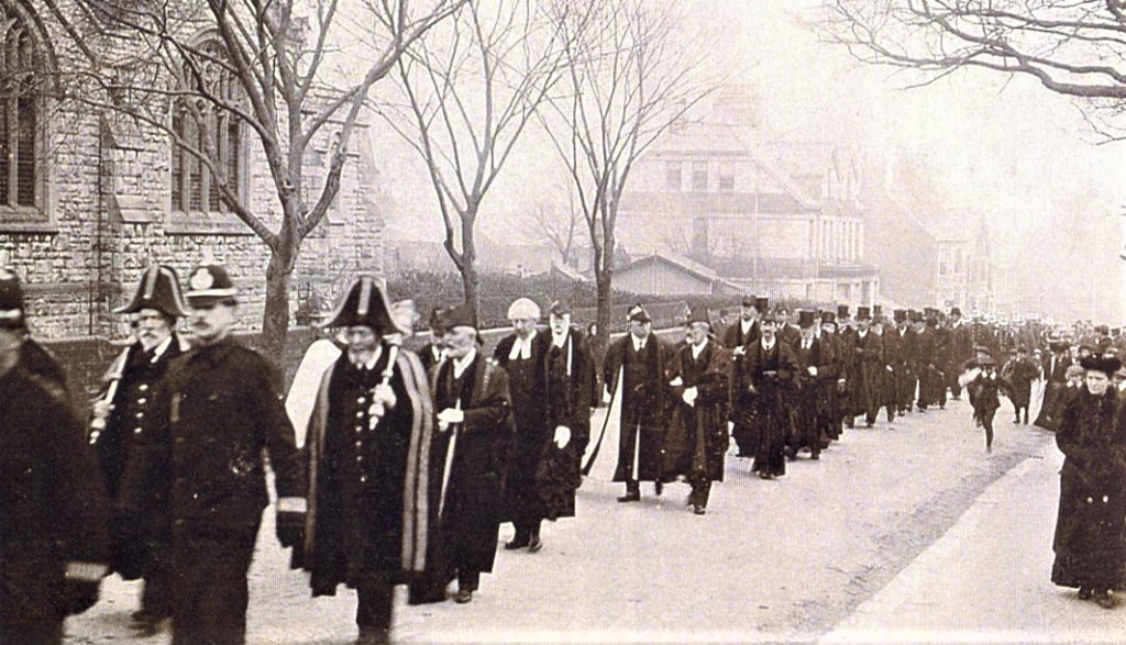 My Father, second P.C. on the left escorting Weymouth Borough Mayor & corporation to church.