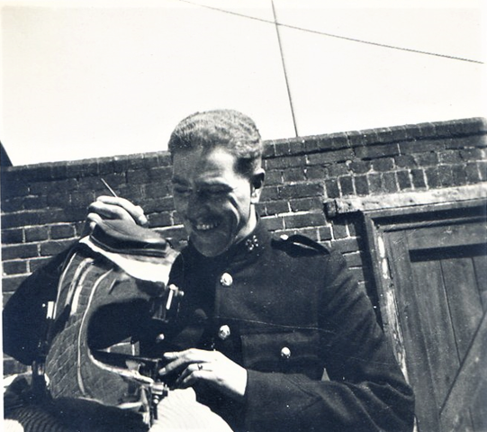 Here is P.C.26 Jack Bennett on the roof of Branksome Police Station before he entered the RAF. He died flying a Lockheed Hudson into a mountain in N. Wales. (Right) Jack Bennett painting the tank of Lloyd Staple’s Motorcycle at Branksome Police Station.