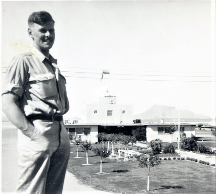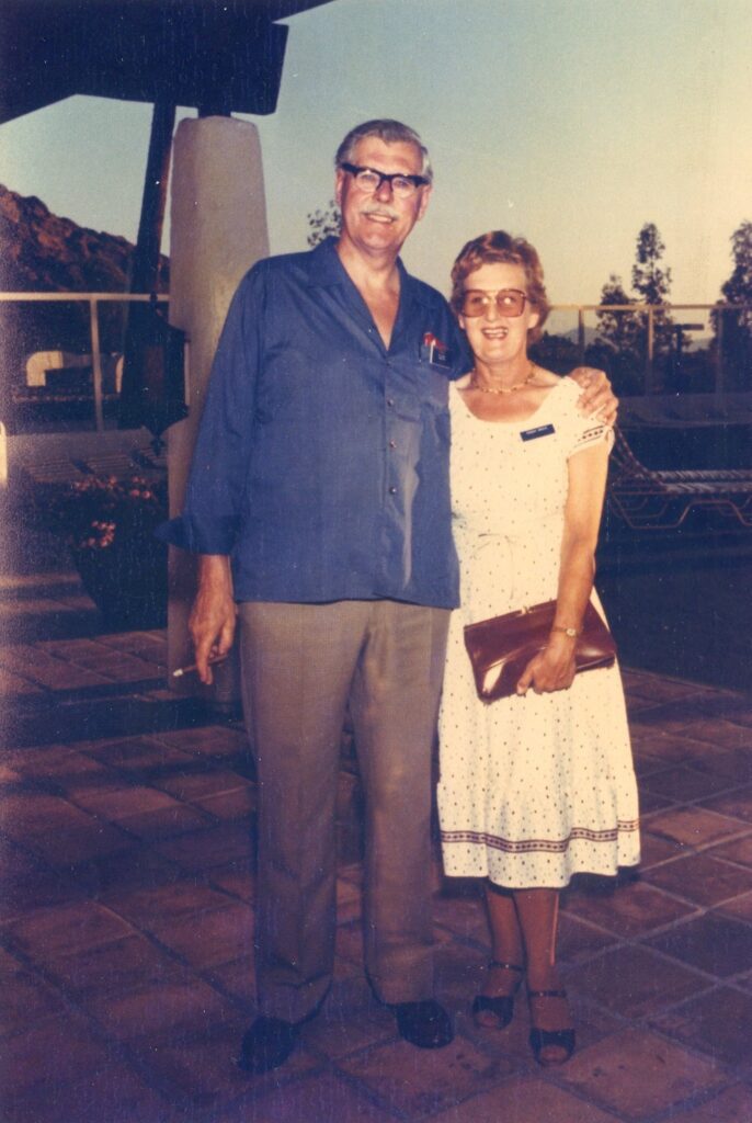 Peggy and I on holiday in Arizona, about to attend a dinner of the Camelback hotel hosted by my ex-instructors under the name of the ‘Helmet and Goggles society’, Phoenix, Arizona.