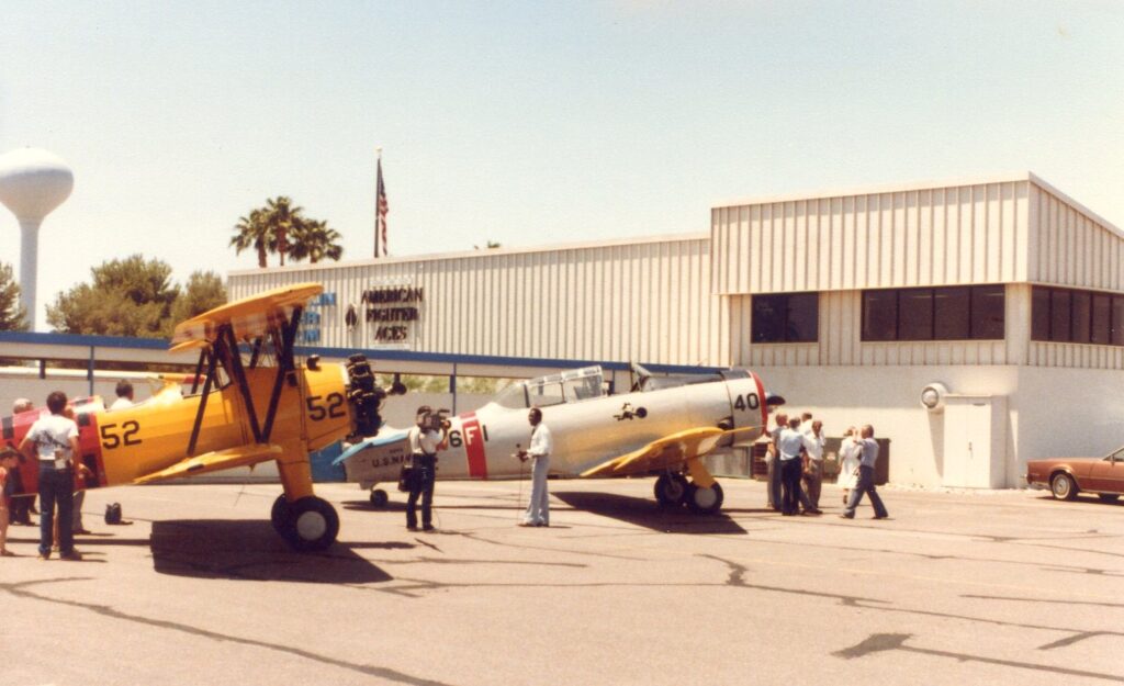 Whilst in the area of Mesa we visited Falcon Field, now it had become the mesa aerodrome but still had two of our old hangars filled with old aircraft as well as the fireplace of our old cadets’ lounge and our swimming pool. The pool was being repaired by an electrician who I found was English and told me that his son had gone back to England and was going to play football for the Weymouth FC side. Yet again, what a small world!
