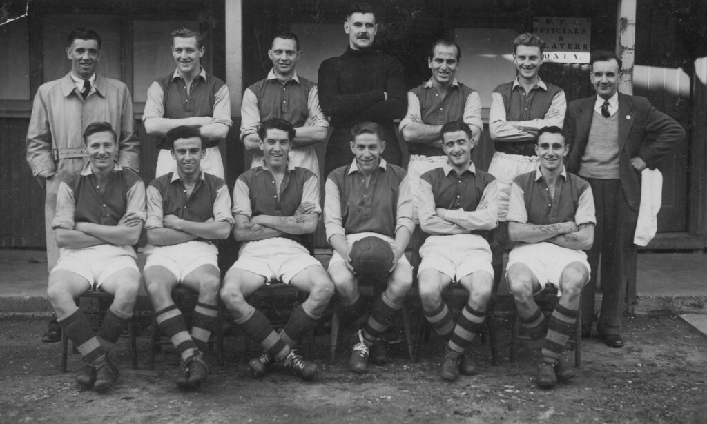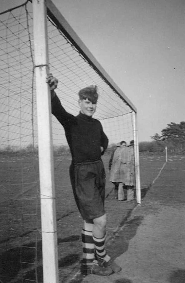 In the village I played football for the team, which had friendly matches only. I was then recruited to the Studland Football Club where at 16 years old I was the regular goalkeeper playing in the Dorset Minor League. This consisted of village teams and was a very competitive league; on away matches one had to be careful and quick. At one village I recall youngsters would stand behind my goal and throw clods of turf at me to distract me when their team was approaching. At another you were always relieved if you could get away from the match with no injuries. At Studland we played in a field at the Manor Farm, with no dressing room or any facilities available, and one hoped that there was no rain to dampen our clothes bundled up under the hedge.