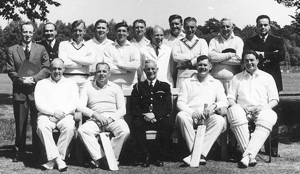 Second from right, front row, as part of the College cricket team at Bramshill.