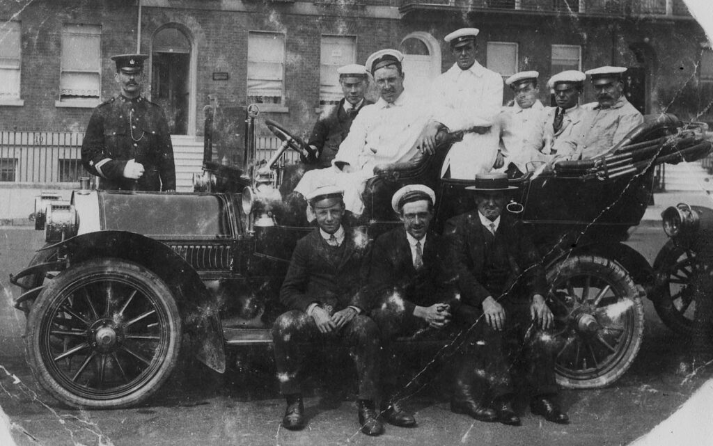 My Father with taxi & drivers on Weymouth esplanade, c.1912.
