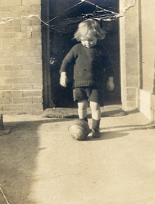 Me, already playing football aged two & (right) with ball and teddy at Dorchester Police HQ.