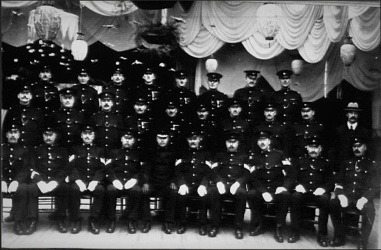 1: PC George HANSFORD 2: PC Walter BLANDAMER 3: SGT Wilfred PUGH 4: SGT Henry PALMER? 5: Retired Chief Walter DAY 6: INSP Eustace MARTYN 7: SGT Richard PELLS 8: SGT William RICHARDSON 9: PC William SCRIVEN. 27 IN TOTAL